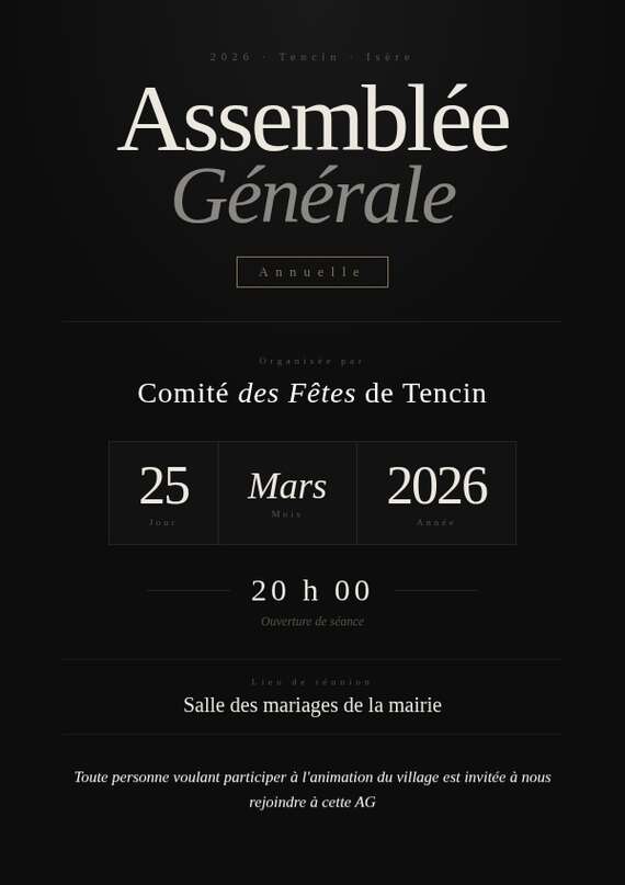 Assemblée Générale du Comité des Fêtes de Tencin